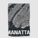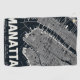 The stylized black and white map illustrations of the Manhattan area in New York City.