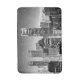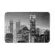 Bath mat in a semi abstract illustration of mid-town Manhattan in black and white, illuminated with city lights, under a starry midnight sky