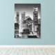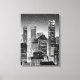 Canvas in a semi abstract illustration of mid-town Manhattan in black and white, illuminated with city lights, under a starry midnight sky