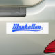 Manhattan, New York City, written with a swash (tail). Fonts in white and blue. Original text design.
