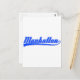 Manhattan, New York City, written with a swash (tail). Fonts in white and blue. Original text design.