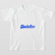 Manhattan, New York City, written with a swash (tail). Fonts in white and blue. Original text design.