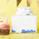 Manhattan, New York City, written with a swash (tail). Fonts in white and blue. Original text design.