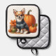L'adorable Chihuahua, au milieu de décorations d'automne vibrantes, avec des fleurs citrouilles et oranges de saison, habillé chaleureusement dans un chandail tricoté élégant, parfait pour les thèmes d'automne ou des concepts de saison douillets.