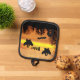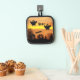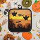À l'heure d'Halloween dans la cuisine, manipuler en toute sécurité les plateaux de cuisson, les feuilles de biscuits et les boîtes de muffin du four avec ce porte-pot avec garniture noire qui présente une image éffrayante et effrayante de fantômes volants et de chauve-souris contre un ciel orange, le soir. Sélectionnez le style de support de votre porte-pot.