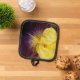 Gérez en toute sécurité les plateaux de cuisson, les feuilles de biscuits et les boîtes de muffin du four avec ce porte-pot avec garniture noire qui présente l'image photo d'une fleur d'Iris violet et jaune barbu. Un joli design floral ! Sélectionnez le style de support de votre porte-pot.