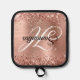 Créez vos propres porte-carré monogramme personnalisés. Parties scintillant d'or rose faux brillant sur une feuille d'or rose et imitation blush. Customisez les styles de police pour créer votre propre design pour sa célébration spéciale. Un cadeau glamour pour elle.