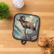 Un mouflon est fièrement posé sur une corniche rocheuse surplombant un paysage montagneux serein, avec des cieux bleus et des nuages épars qui rehaussent la beauté naturelle et l'essence de la faune de la scène.