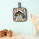 Un coq bleu aux ailes dorées et un peigne rouge vif est entouré de fleurs colorées sur ce charmant porte-pot de style art folklorique. Parfait pour tous ceux qui aiment l'art populaire, le pays et les poulets.