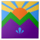 Add a touch of artistic charm to your space with our decorative tile featuring the flag of Manitou Springs, Colorado! Designed with attention to detail, this tile is more than just a decorative piece—it’s a tribute to the city’s vibrant culture and breathtaking surroundings. The bold design showcases the radiant golden sun rising above lush green mountains, set against a vivid blue sky and deep purple base with symbolic water details, making it a striking and meaningful accent for any room. Whether displayed as wall art, used as a trivet, or added to your décor collection, this Manitou Springs flag tile blends practicality with cultural pride.