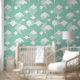 Cool blue ocean themed wallpaper, patterned with white manta rays and stingrays. This gorgeous wallpaper will add a lovely relaxing vibe to any space.