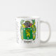 Crête de famille de Malone comprenant l'origine et la signification du nom de Malone sur une tasse en céramique. Nous avons 1000's des crêtes (manteau des bras). Si nous n'avons pas votre manteau de bras sur notre site de Zazzle nous faisons savoir et nous serons heureux de l'ajouter. Pour information envoyez-nous chez heraldry505@hotmail.com