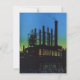 Vintage illustration business industry design featuring a manufacture factory plant by the river in the evening. The light glowing in the sky could be at sunrise, the start of a new work day for the blue collar laborers.