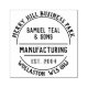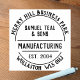 Manufacturing Company stamp. Manufacturers Rubber Stamp. Company Name, Business type, plus Two Lines of Address in a circular effect. A business rubber stamp for all kinds of stationery items, envelopes, packages etc. Stamp your return address easily and stylishly.