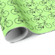 This wrapping paper design features many simple black bicycle icons on a green background.