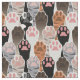 An illustrated pattern of many cat paws with little bean toes! Each paw is coloured in a different cat fur type - tuxedo cat, white cat, black cats, orange cats, tabby cats & siamese cats.