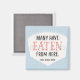 Many Have Eaten From Here Kitchen Magnet - Presenting this vintage style typography magnet with the cheeky saying "many have eaten from here, few have died". Make sure this isn't your last meal because this is the perfect gift. Perhaps for that friend, family member or co worker that thinks he/she is a master chef but might need a little extra training. It's also a great gift idea for your loved ones or just as a fresh decorative touch to your kitchen.