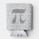 Celebrate March 14 with this can cooler, which features an oversized Pi symbol overlaid with many digits of this mathematical constant, rendered in a 60s OCR-style punch card font. Reverse shows identical design.