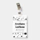 This badge design features a pattern of various sized music notes. It might be appreciated by a musician, a composer, a singer, or somebody else who really likes music. It also features a personalized name in black coloured text within a light coloured area. There is also a customizable message under the name that could show information such as a job title, or a profession, or a business/company name. [~Z0000176]