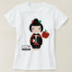 This Kokeshi has an apple pattern kimono and an apple on her sleeve.