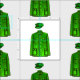 An illustration of a green Chairman Mao Suit or Zhongshan suit, presented on a red and yellow background, representing the colours of the PRC flag.