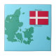 Map and flag of Denmark with Denmark printed in English andDanish.