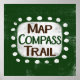 "Map Compass Trail" is a fun text design with a white accent shape surrounded by white whimsical textured dots.