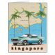 Illustrated map of Singapore in a beautiful vintage style poster with a classic supercar.