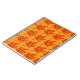 stylized illustration of a Maple leaf, characterized by its vibrant orange colour. The leaf is depicted with a distinct outline and exhibits a classic maple leaf shape, with multiple pointed lobes and jagged edges. The veins of the leaf are outlined and noticeable, adding texture to the design. A short, brown stem connects the leaf to what appears to be its branch, completing the illustration with a simple yet eye-catching aesthetic. The overall design has a flat, graphic quality, emphasizing the bold colour and shape of the leaf.
