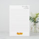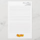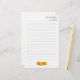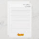 Personalized stationery with specialty paper available (basic white is shown) in a Fall theme. Golden yellow and orange-red maple leaves decorate the bottom of this lined writing paper with templates for custom text at the top. Add a name in script and address (two lines) beneath. Delete all example text to order this paper blank.