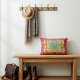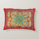 An accent pillow with an abstract pattern by the Czech artist Alphonse Mucha (1860-1939) from the Art Nouveau period, with various coloured leaves in Autumn colours of red and orange.