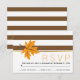 Maple leaves and brown, white stripes fall or autumn wedding RSVP reply card. The brown and white striped pattern and the orange maple leaves on the corners of a white frame with gold outline and your text adorn this elegant autumn wedding invite.
