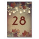 Rustic and burgundy fall mason jar lights wedding table number cards