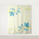 Maple leaves aqua blue and yellow summer wall tapestry. It showcases beautiful maple leaves in orange and yellow, brown swirls and polka dots.