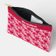 Small Accessory Pouch in Red and white maple leaves on a pink background. Comes in large as well. Charcoal background is also available.