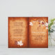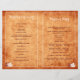 Elegant maple leaves orange fall wedding folded ceremony and party program that features elegant maple leaves in orange, white and brown colours and swirls on burnt orange grunge stained background. This elegant modern wedding template design is part of a wedding collection or set and is totally customizable. It is perfect for a fall or autumn wedding. You will have to fold it in the centre. Choose only this type of paper-value as it folds well. Maple,leaves,wedding,invited,orange,burnt+orange,white,brown,grunge,stained+background,template,fall+wedding,autumn+wedding,swirls,customizable