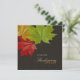 Modern and elegant Thanksgiving dinner / party invitation template with colourful autumn theme featuring beautiful red, orange and green maple leaves on chocolate brown background.