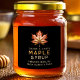 Editable homemade maple syrup canning label featuring a maple leaf illustration. Make your own canning labels for your favourite homemade recipes. Perfect for preserves, homemade gifts or as kitchen pantry organiser.