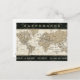 © Pela Studio / Wild Apple. A vintage looking map of the world. The continents are drawn with tan colours against an off-white background.