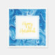 Marbelized Paint Art Blue Happy Hanukkah Yellow Napkin