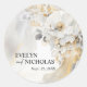 Marble Agate Gold Grey Floral Peony Flower Wedding Classic Round Sticker