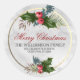 Marble and Gold Christmas Holly Family Address Classic Round Sticker