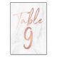 Add a stylish touch to your wedding reception with custom table cards. The wedding table cards feature a white marble background and a faux rose gold trendy script font. Additional numbers can be found in the collection below.
