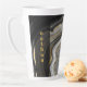 Personalized large latte mug with black and gold marble design. The template is set up for you to add your name, in modern bold typography, vertically down one side of the mug on a semi-opaque dark panel.