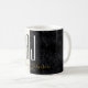 Modern, elegant, black and white marble in combination with giant custom initials - monogram and gold full name at the bottom. Stylish, contemporary, classy coffee mug.