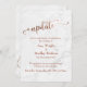This suite's distinction is due to the modern, script font used for accent phrases, embellished with a faux-copper effect. If you're in the position of needing to inform your wedding guests that you've had to change your big date, here is an elegant option. In this piece, the pretty script font was used to create a simple graphic depicting the word "update"; the same font was used to render "love" that was placed on the reverse. The background was covered in a subtle grey and white marble image. Use the template fields to add your personal details and make this unique, modern design your own. // 57 //
