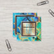 A stunning, luxurious and trés chic background comprises of a fusion of watercolor shades. in dark and light blue; purple; green; black and faux gold on which a faux gold square inlay with a black border trim rests that has text templates for your monogram, name and profession. The back has the same elegant design and additional templates for your business particulars. These upmarket cards are ideal for any professional working in the fashion, beauty and interior decorating industries. They are suited to corporate businesses dealing with natural stone products and ink suppliers.