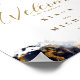 An abstract background reminiscent of marble in shades of navy blue veined with glittering gold is the backdrop for elegant script text and modern design layouts in the pieces of this beautiful wedding suite. The wedding sign shown here features the above plus optional flowing script text of 'Welcome' and a template to add your names and wedding date. Search ID644 to see all the coordinating pieces in this set.