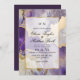 Modern stylish wedding invitation marble purple with gold dust on with a gold ink pour effect (the gold is a digital effect, not real foil!) and modern calligraphy. Classy and elegant, simple and modern invitation.