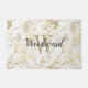 This chic, elegant design features a white and gold marble background. Personalize it with your monogram initial in gold coloured serif font and your family's name in charcoal grey calligraphy script.